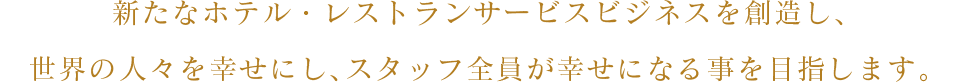 今までにない新しい価値をもったホテル・レストランを創造し、世界中のあらゆる人々に幸せと満足を提供します。